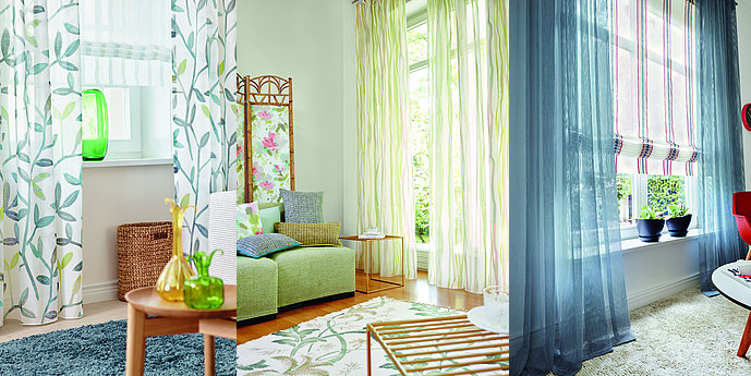 Nicht zuviel Design und nicht zuviel Farbe lautet die Maßgabe – transportiert werden Frische und Leichtigkeit, die Ihre Räume verschönern. Die Farben und Designs sind so aufeinander abgestimmt, das alles miteinander kombiniert werden kann und so auch ganz individuelle Fensterdekorationen entstehen können. Die Qualität der Stoffe ist überzeugend und hat sich über die lange Zeit der Jahre durchgesetzt. Immer wieder entstehen tolle Designs, Farbkombinationen und Looks die unterschiedlich in Ihren Wohnräumen zur Geltung kommen.